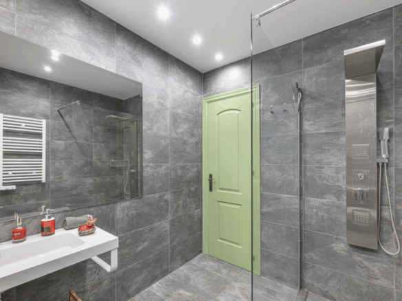 Na piętrze znajdują się dwie komfortowe sypialnie, każda z prywatną łazienką en suite, gwarantujące pełną prywatność i wygodę.
