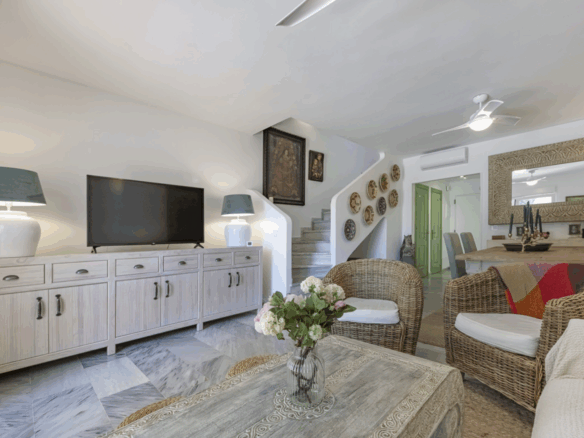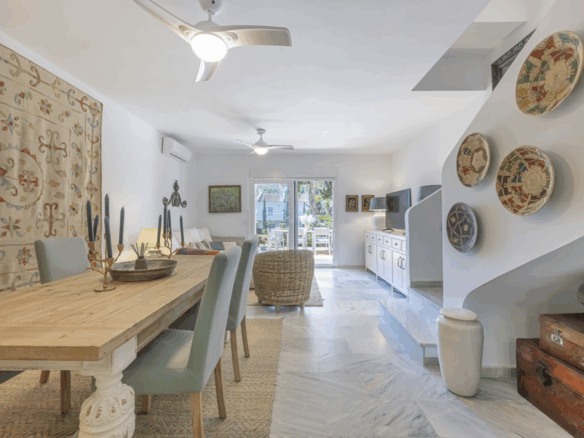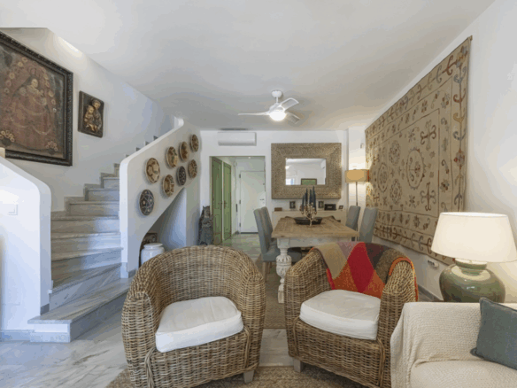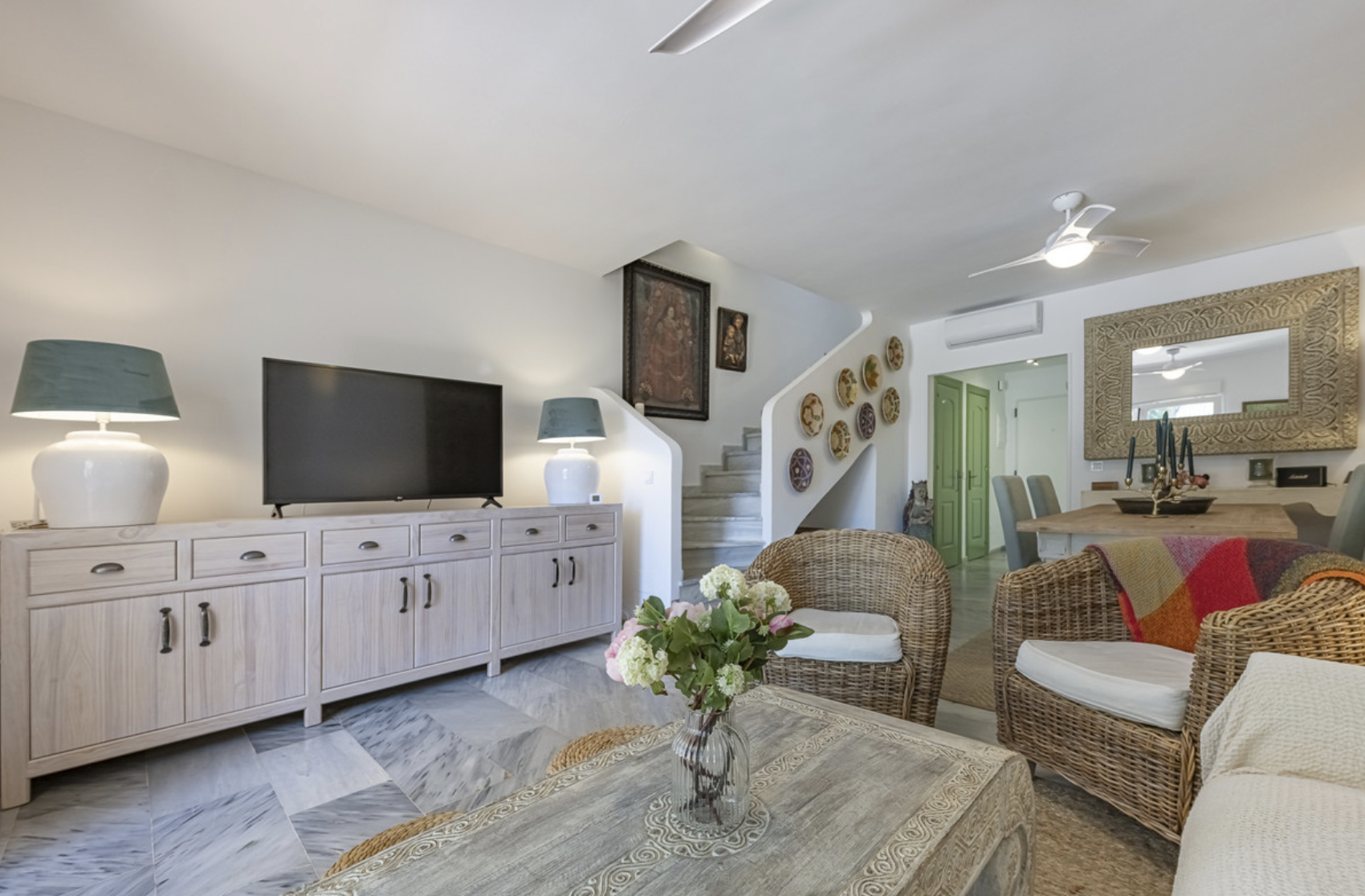 Ten stylowy, dwupoziomowy dom szeregowy położony jest w jednej z najbardziej pożądanych lokalizacji Marbella East — Cabopino, zaledwie krótki spacer od jednej z najpiękniejszych i chronionych plaż Costa del Sol – Playa de Artola.