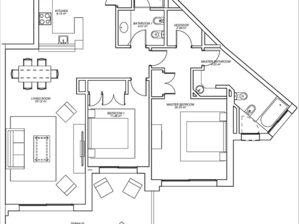 Apartament został zaprojektowany z myślą o funkcjonalności i komforcie: