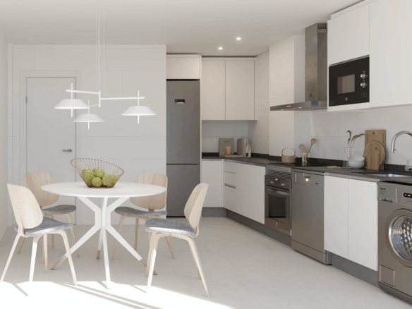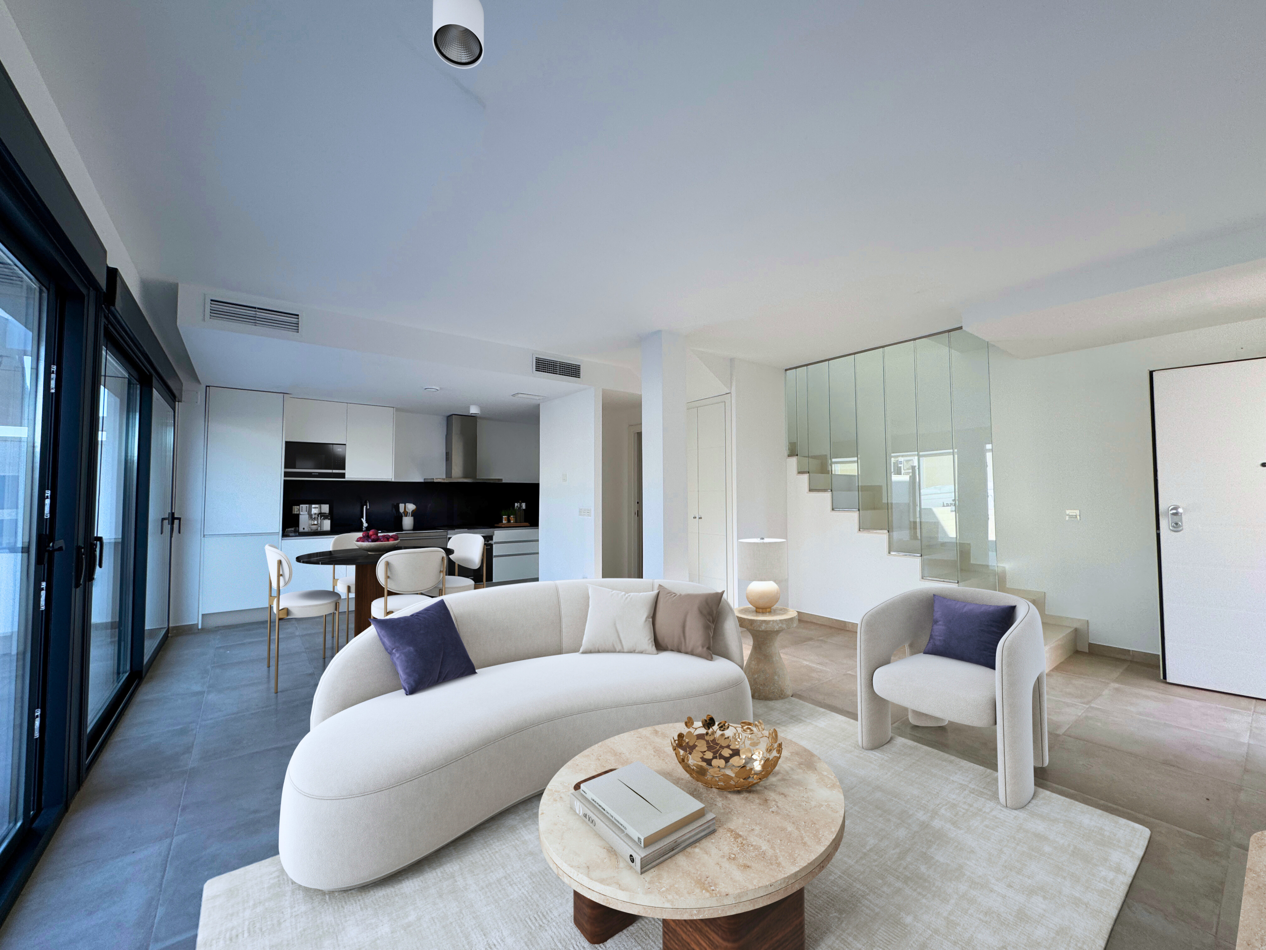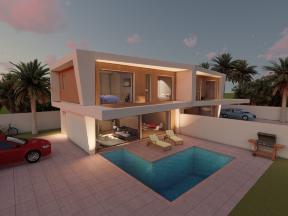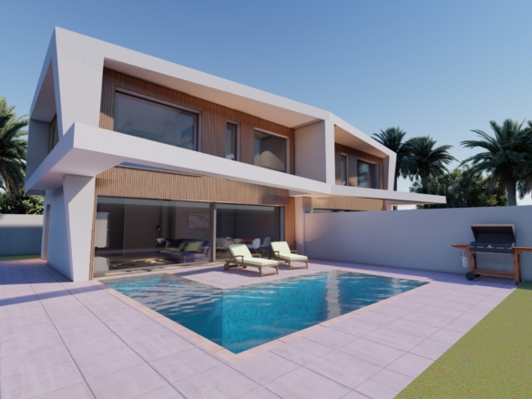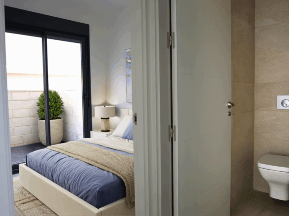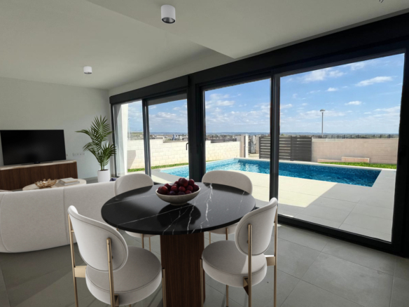 To willa w zabudowie bliźniaczej z efektowną podwójną wysokością pomieszczeń, oferująca możliwość aranżacji nawet do 4 sypialni. Kuchnia może być otwarta na salon lub stanowić oddzielne pomieszczenie – zgodnie z preferencjami właściciela. Lokalizacja zapewnia bezpośredni dostęp do drogi krajowej N-332 oraz autostrady A-7, a także dogodne połączenia z centrami miast Elche i Alicante.