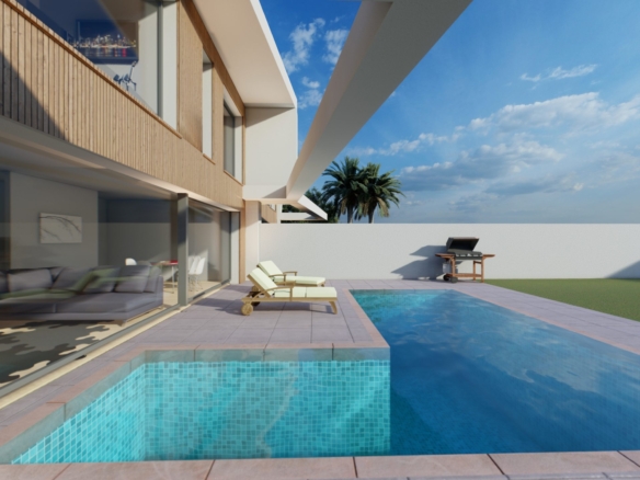 Istnieje możliwość wyboru układu domu bez dodatkowych kosztów – dostępne warianty obejmują 2, 3 lub 4 sypialnie. Nieruchomość może zostać wyposażona w nowoczesny prywatny basen oraz przestronną działkę o powierzchni 215 m² z tarasem i frontowym gankiem.