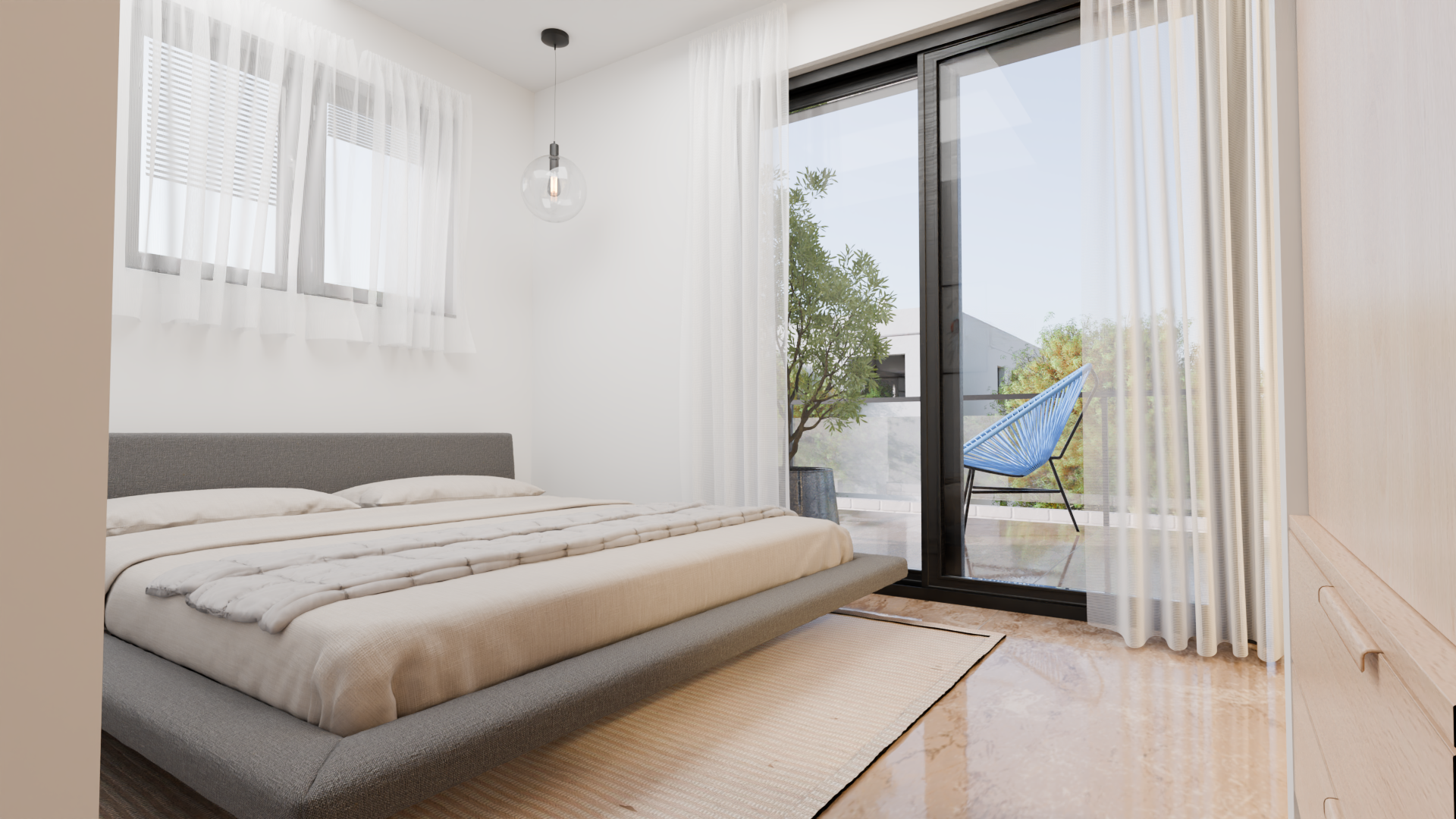 Willa Mondrian oferuje możliwość pełnej personalizacji wykończenia, dzięki czemu możesz dostosować przestrzeń do własnych potrzeb. Nieruchomość posiada duży taras o powierzchni 20 m² na pierwszym piętrze oraz przestronny ganek 30 m², idealny do relaksu i korzystania z klimatu śródziemnomorskiego. Istnieje również opcja budowy prywatnego basenu.