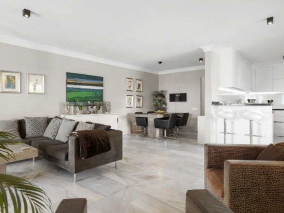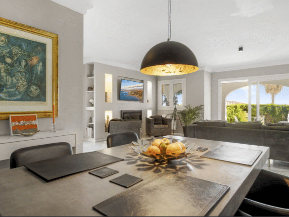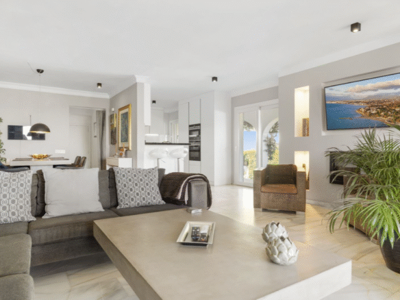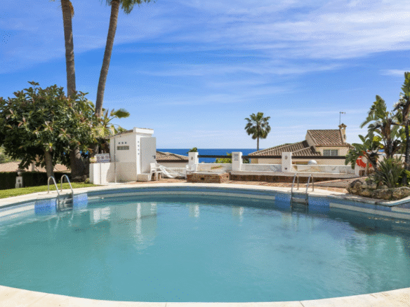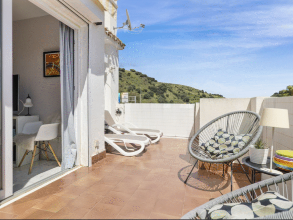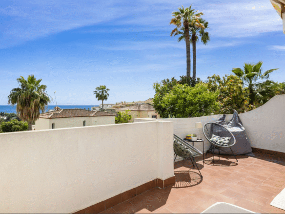 Na sprzedaż wyjątkowy, elegancki dom szeregowy typu corner house, położony w prestiżowej i spokojnej urbanizacji Las Gaviotas, Mijas. Ten pięknie odnowiony dom powstał z połączenia dwóch oddzielnych apartamentów, tworząc przestronną i stylową rezydencję z południową ekspozycją i widokiem na morze. To idealna propozycja dla osób szukających komfortowego, luksusowego domu w nowoczesnym stylu blisko plaży i pełnej infrastruktury.